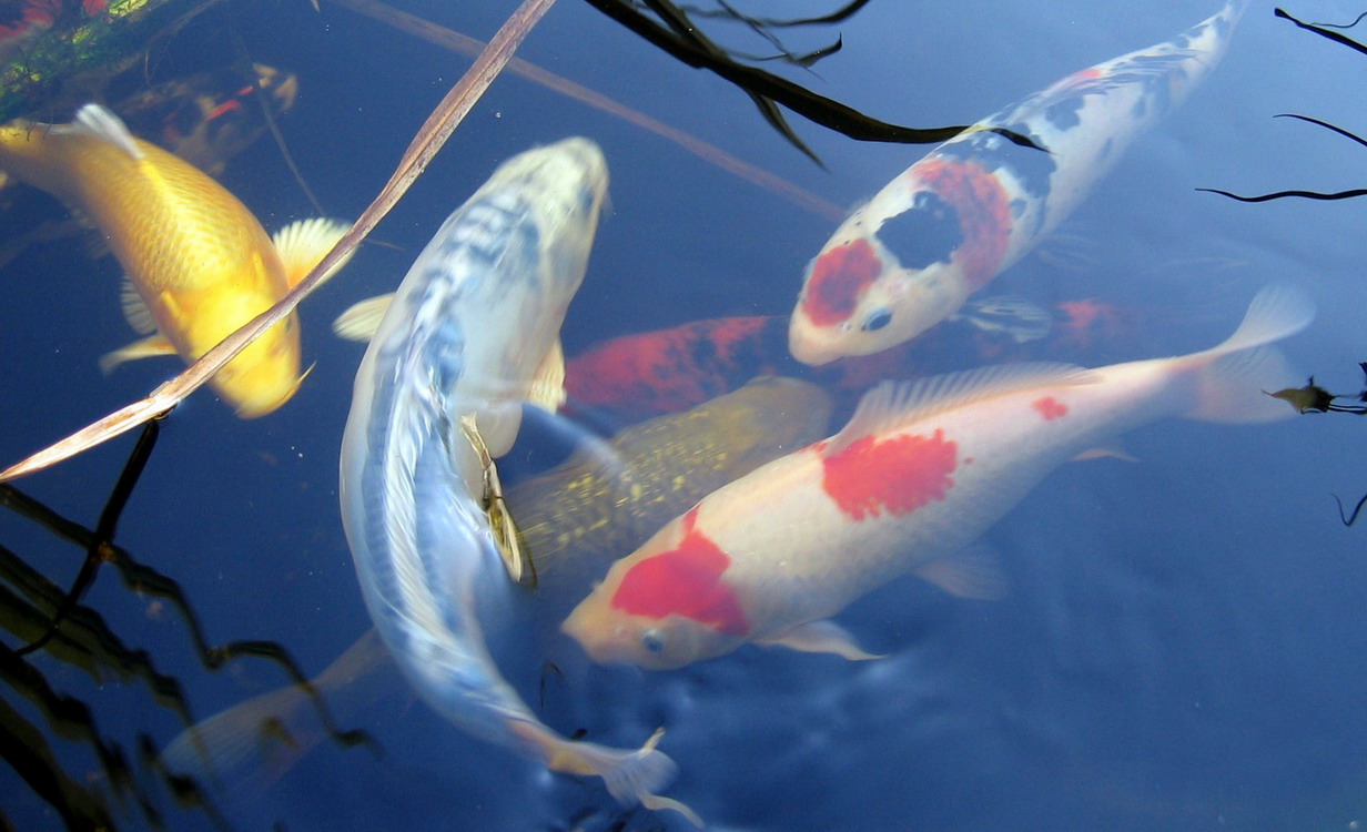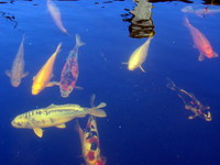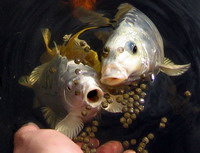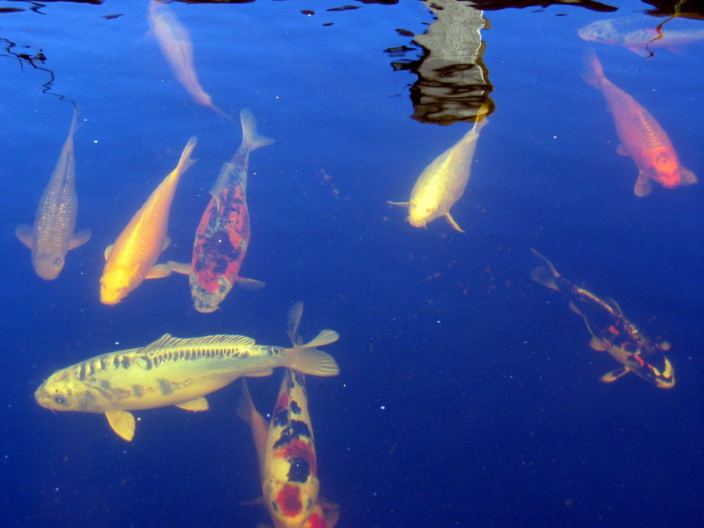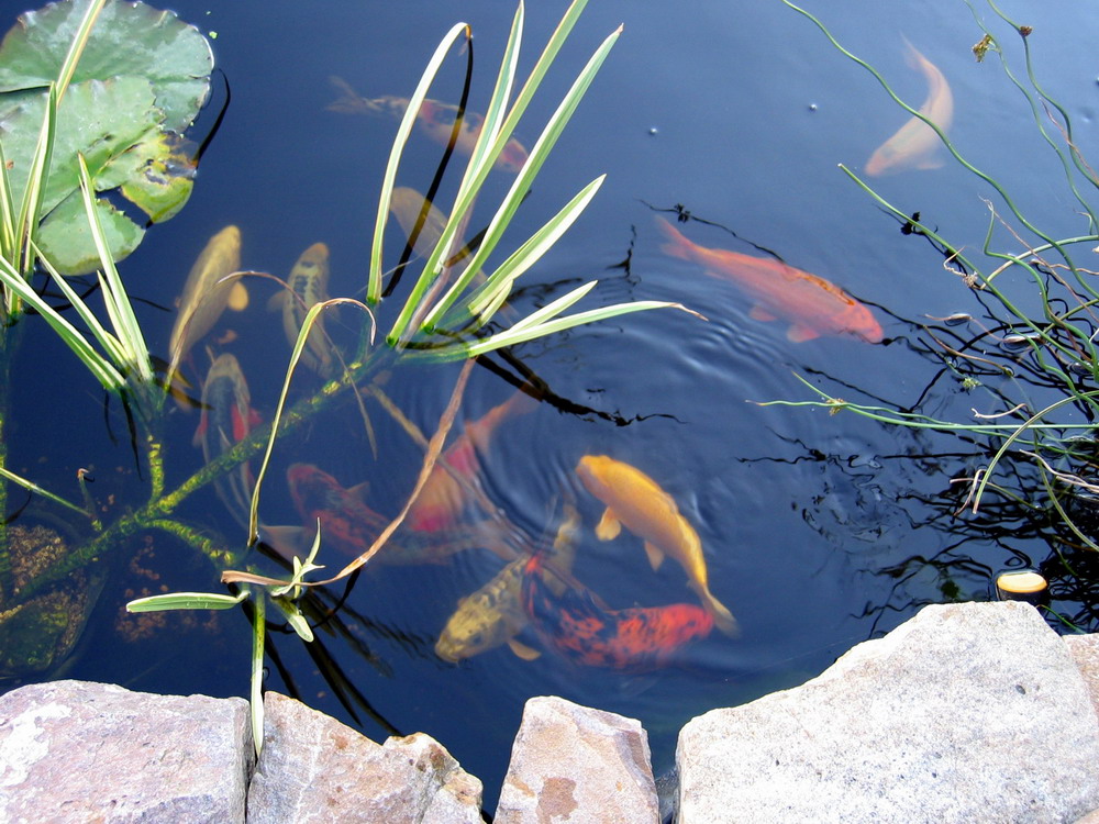 Quelques photos des habitants du plan d'eau : des goinfres écaillés, plus communément appelés koïs. Ils sont au nombre