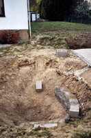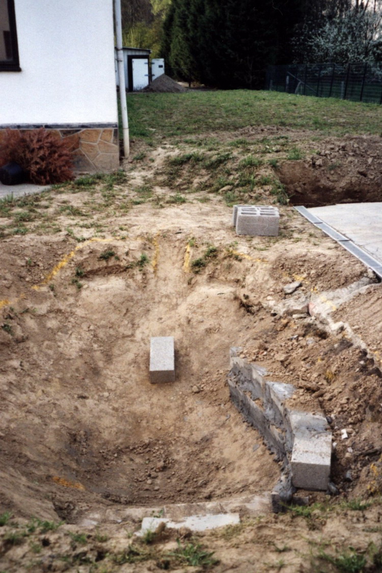 maçonner mes paliers en partant du fond du trou existant. Donc, après tracé à la bombe de peinture du contour du bassin sur