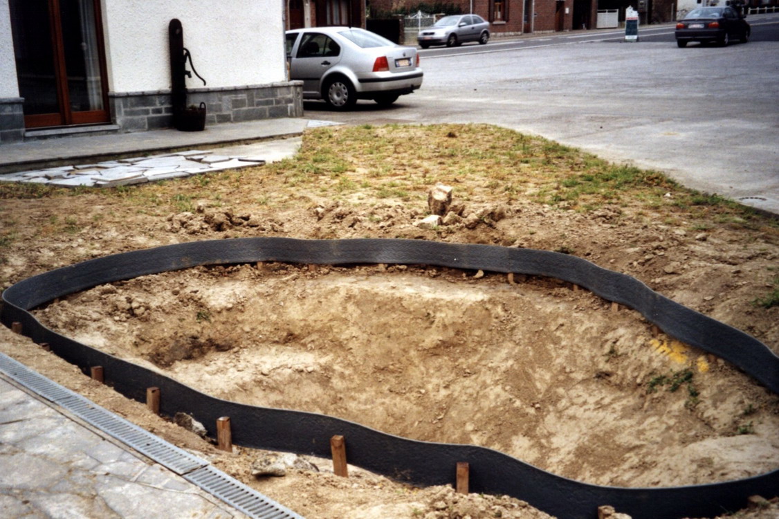 A postériori, j'aurais pu fixer sans ces 7 cm, puisque j'ai finalement garni le pourtour du bassin de pierres naturelles ...