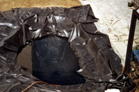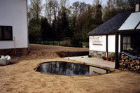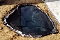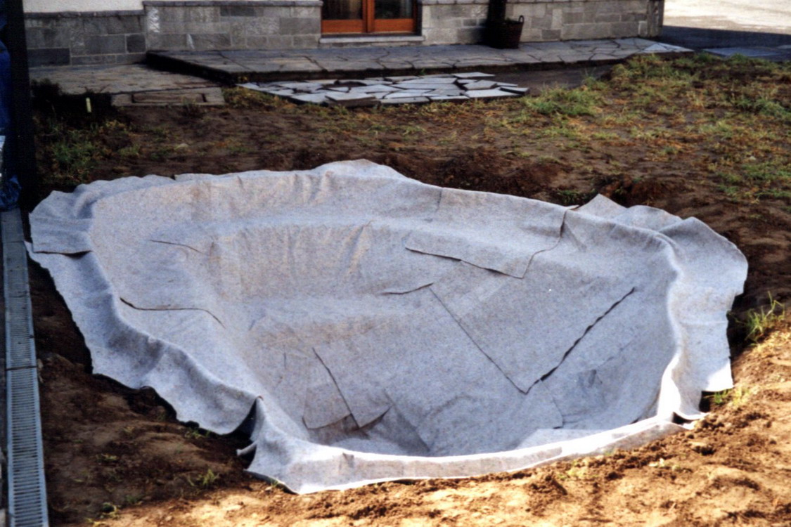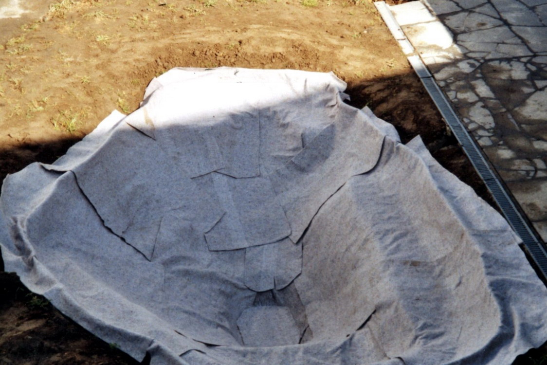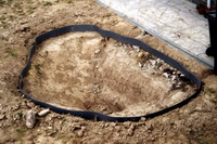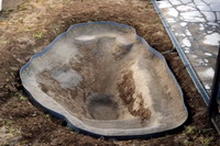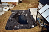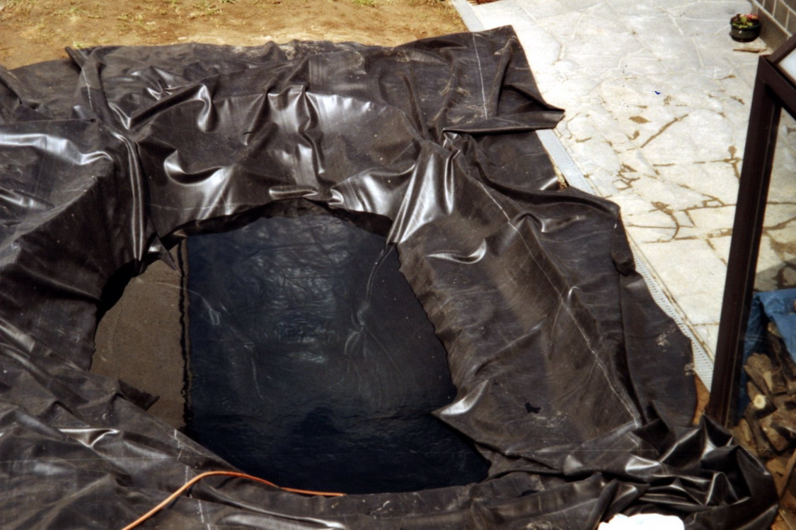 Et puis la bâche. Ca fait son poids l'EPDM, mais le bassin n'étant pas trop grand, ça reste maniable. Déposée dans