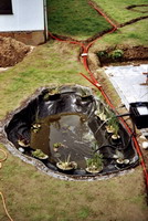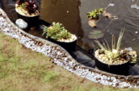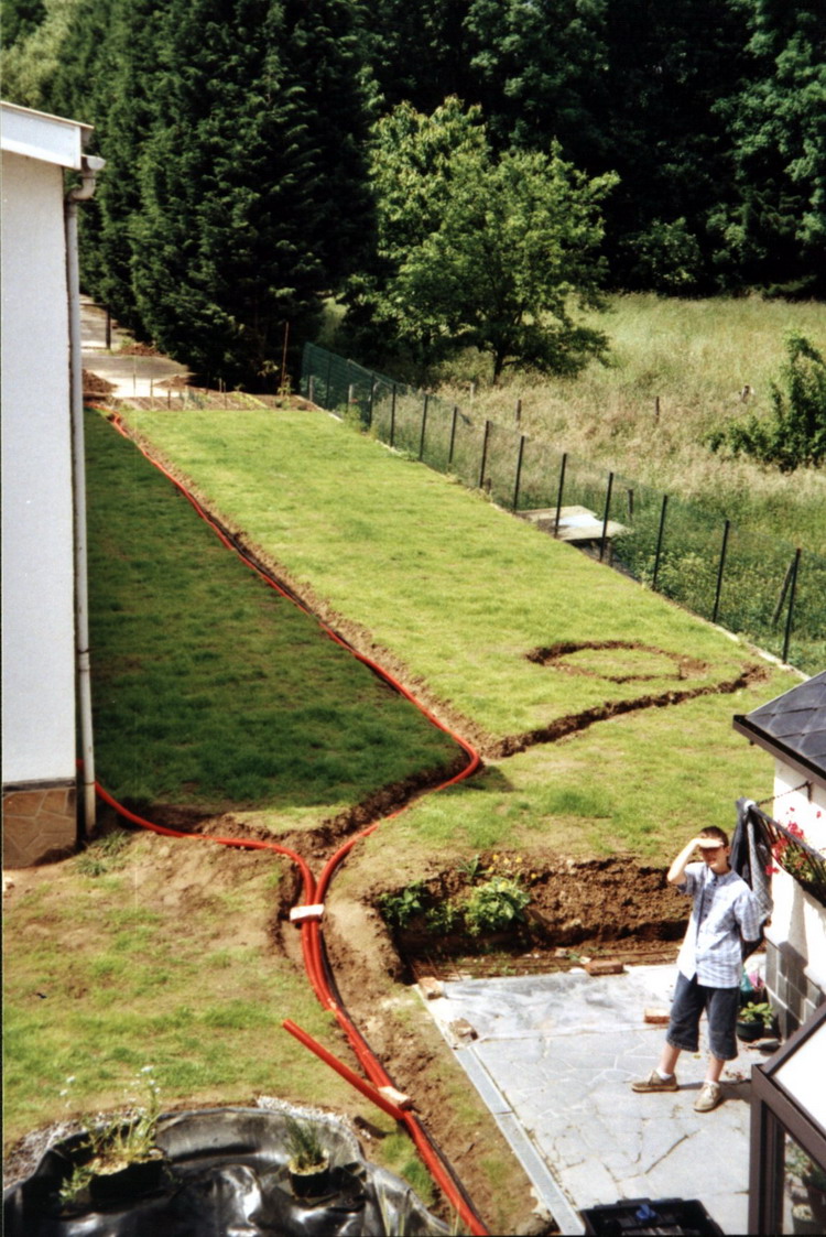 - que sur tout le tour du bassin, environ 10 cm de terre sur 10 cm de profondeur a été enlevée et remplacée par des