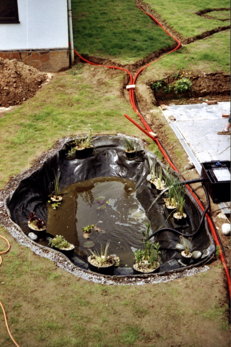 - que la pompe a été installée et le filtre placé provisoirement à côté du bassin (je reparlerai du matos, pompe, filtre, ...