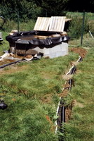 C'est parti, la forme est creusée, une petite semelle de béton et puis 3 blocs de hauteur, sans oublier les découpes