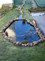 Entretemps, j'ai aussi terminé la finition du pourtour du grand bassin, sur les cailloux-drain, on a simplement posé