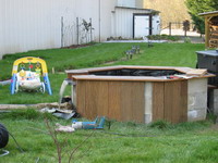 Reprise au printemps 2005 avec le reste de l'habillage du petit bassin. Les planches d'ipé sont fixées à l'aide de vis inox