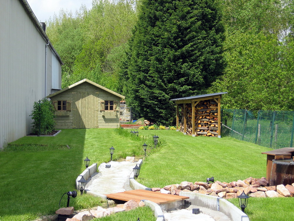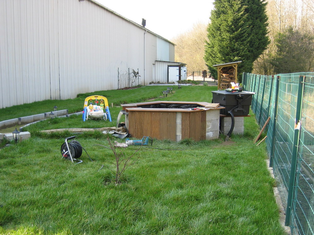 En plus des bassins, l'évolution du jardin suit son cours : apparition de l'abri bois,