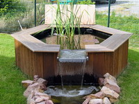 Pour le deuxième bassin, on voulait quelque chose de tout à fait différent du grand bassin : hors sol et en bois ... et