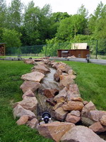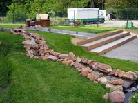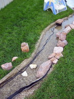 Et hop, on attaque l'habillage du ruisseau, plus de 10 mètre de pierres à installer (fois 2 côtés), c'est du boulot. Le même type