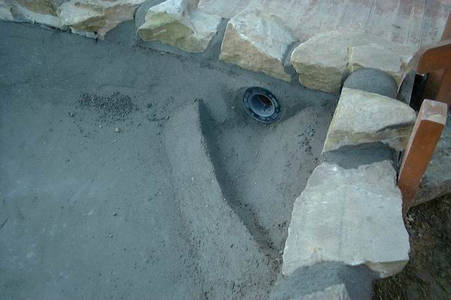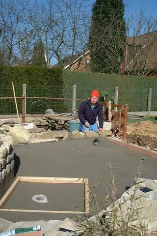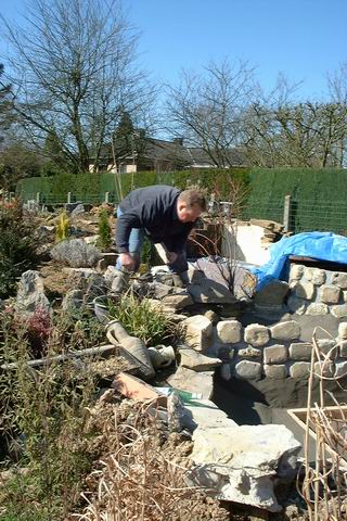 Michael pose les pierres des abords de la réalisation