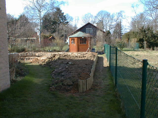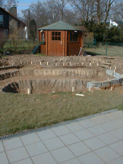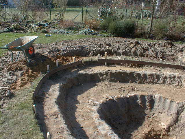 afin de créer un relief autour de l'étang. Une cascade est prévue et, de se fait, il faut un point haut. Cela va permettre de réaliser une rocaille par la même occasion.