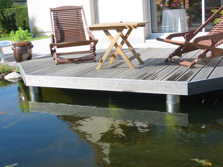 C/L’emplacement est stratégique ou disons confortable pour faire l’entretien du bassin (passage de l’épuisette, entretien du skimmer, nourrir les poissons.