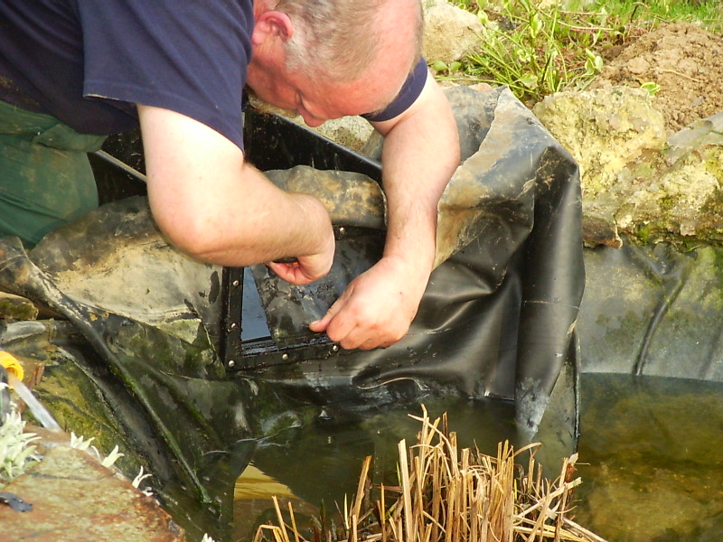 de votre étang à la petite porte prévue pour recevoir l’eau et les