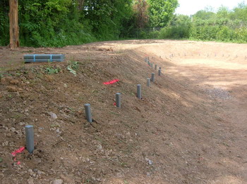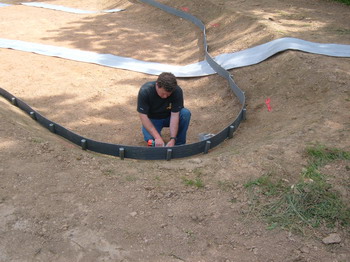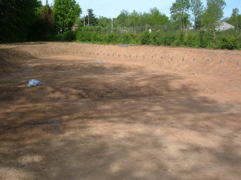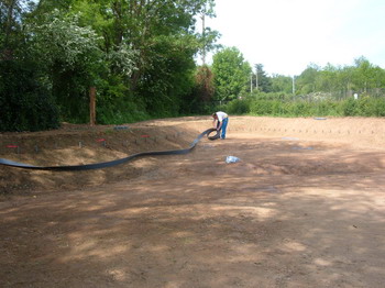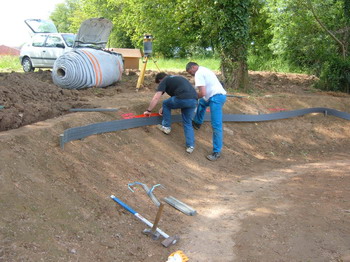 | Pour une petite partie du bassin, l'encrage de la membrane