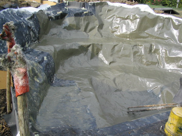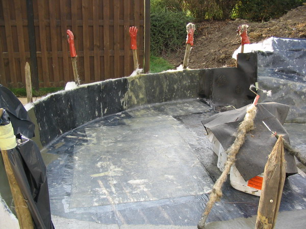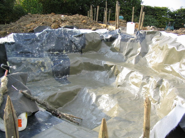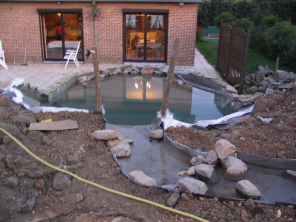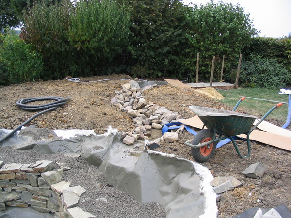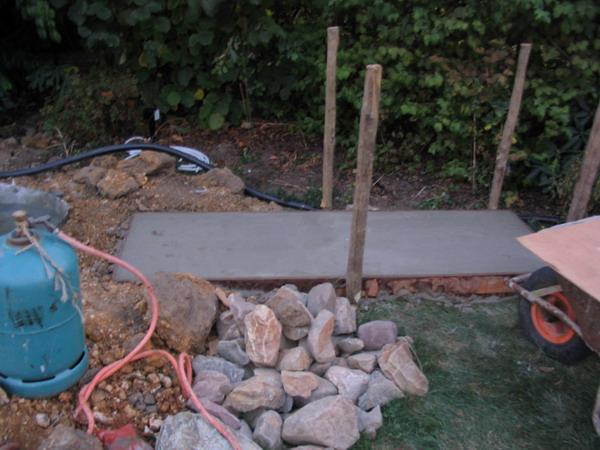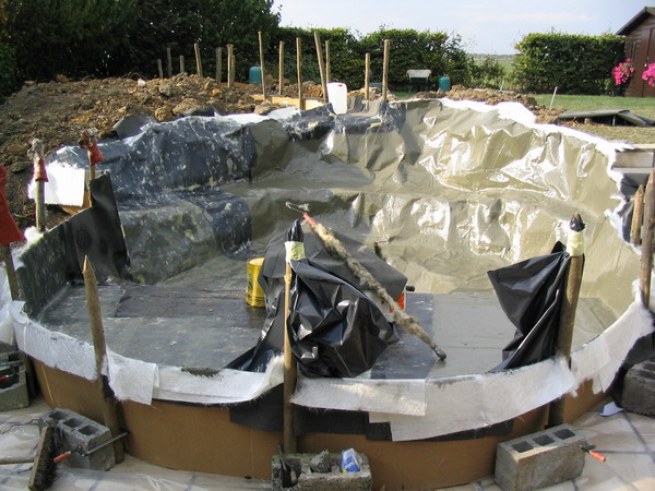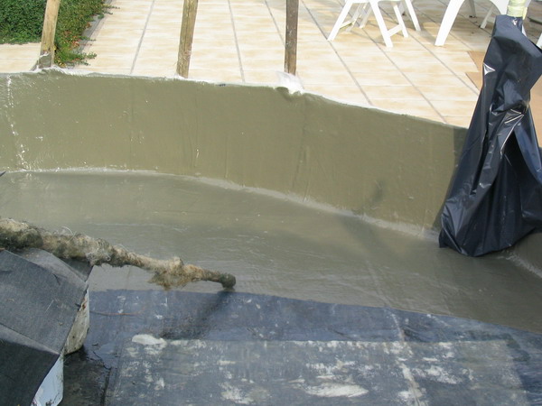 béton prêt à recevoir le filtre du bassin |