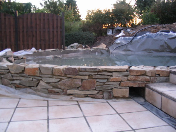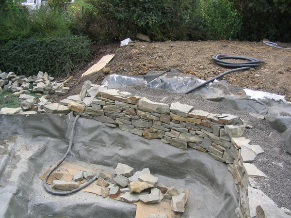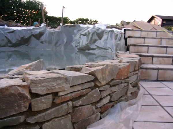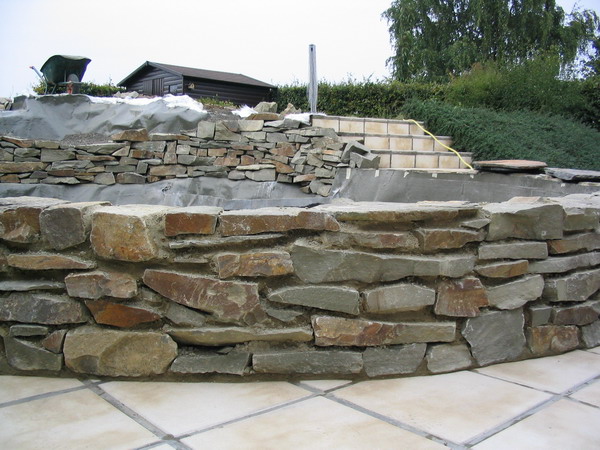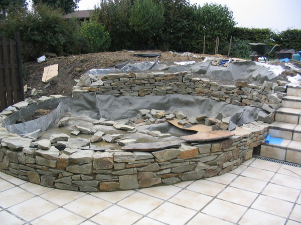 du mur de la cascade est rempli d'argex afin d'éviter des fortes pressions