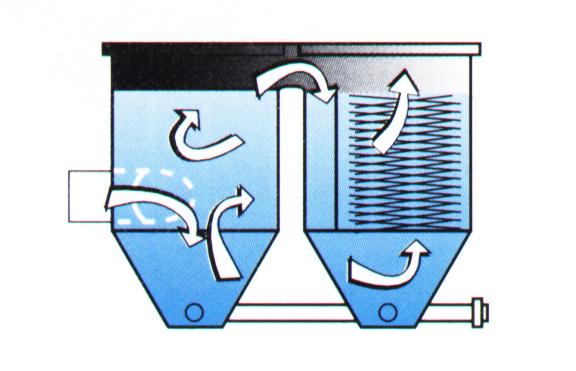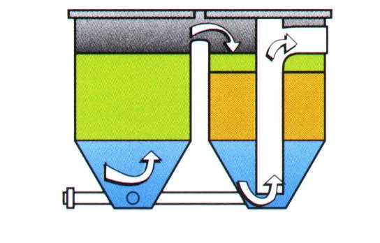 - L'eau rentre dans la première cuve (vortex),
