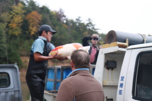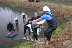 mud pond de chez Sakai fish farm avec un groupe de Hollandais dont fait