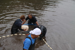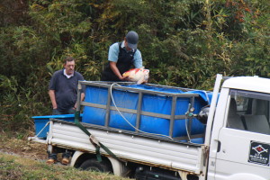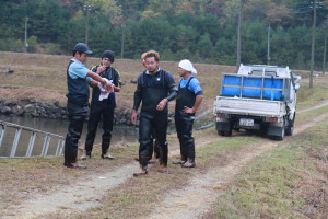 Koi Hunting of Danny's koi café november 2008 - Sakai fish farm harvest in mud pond 2