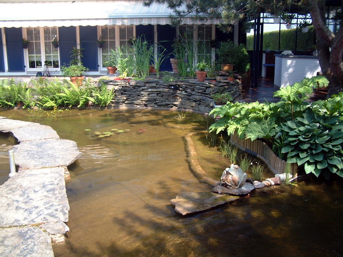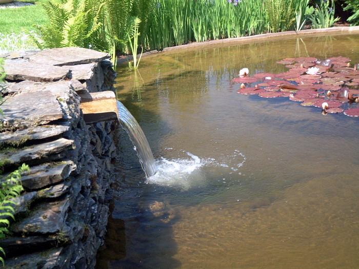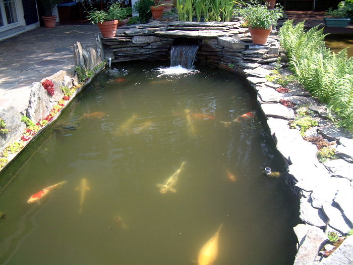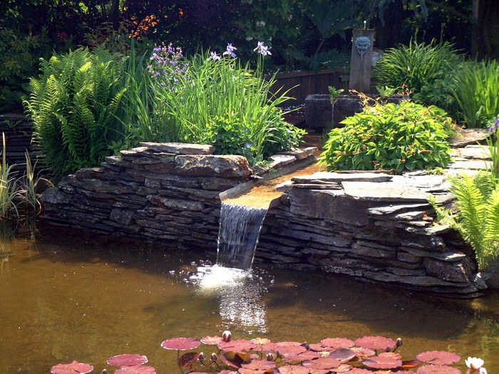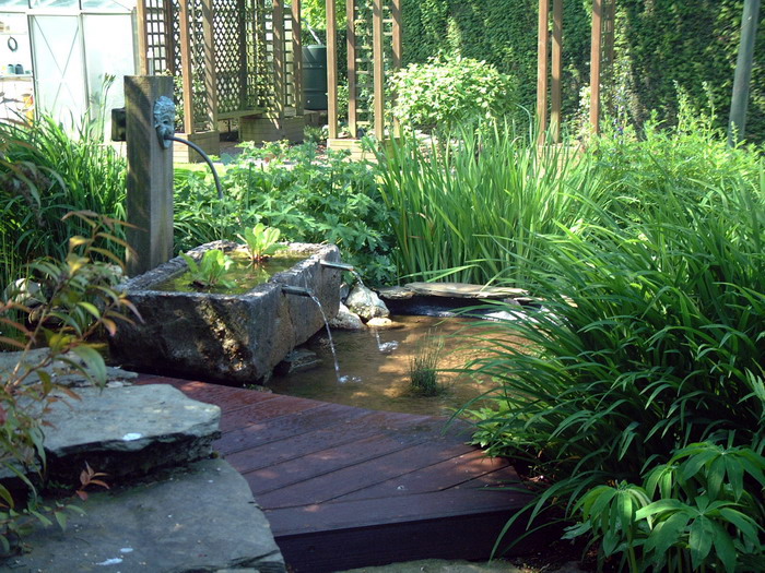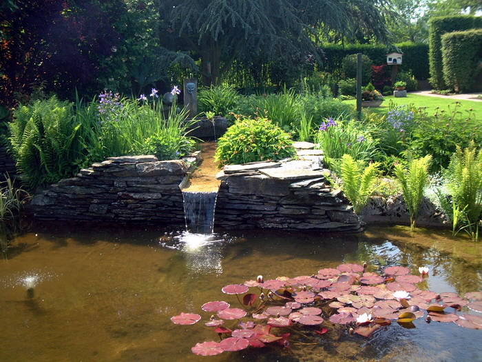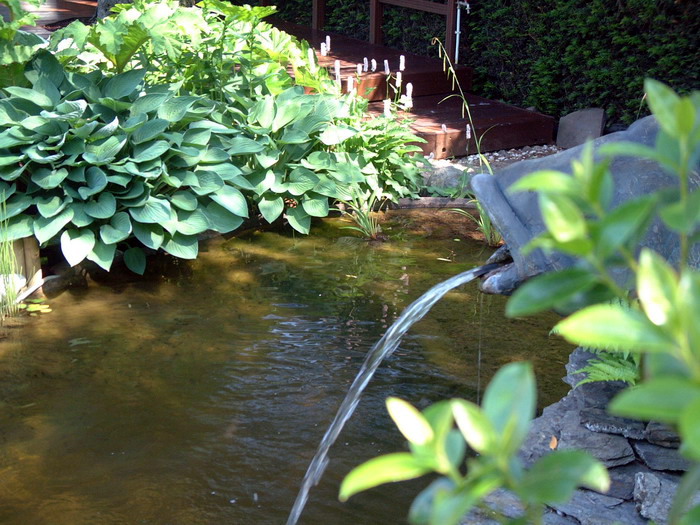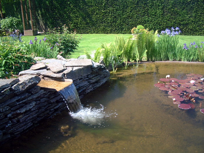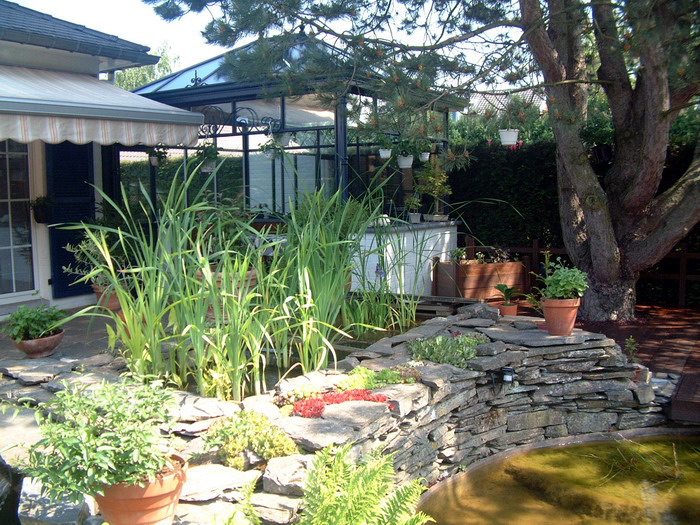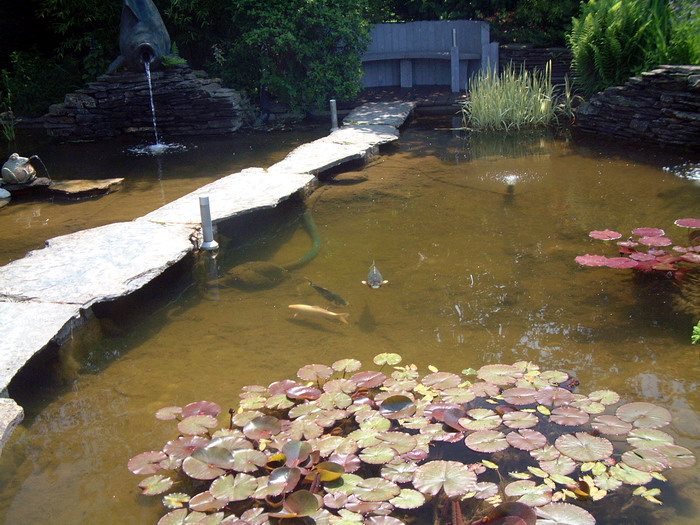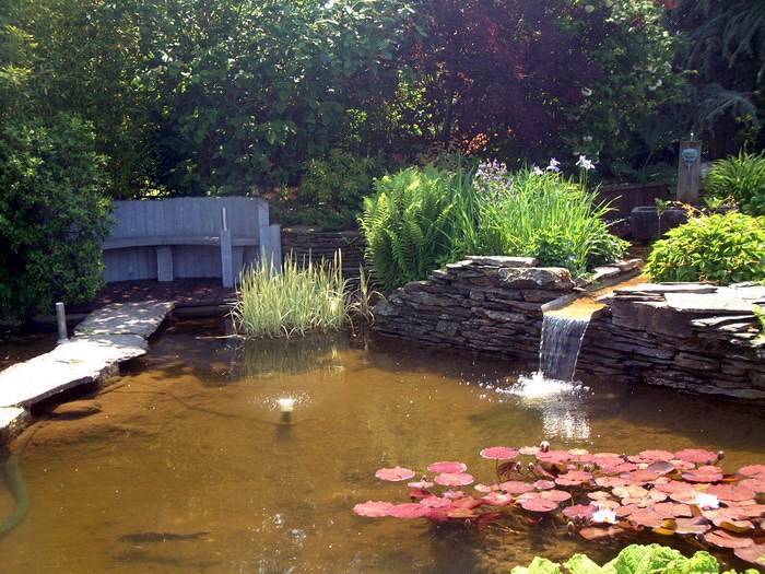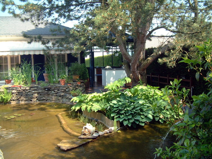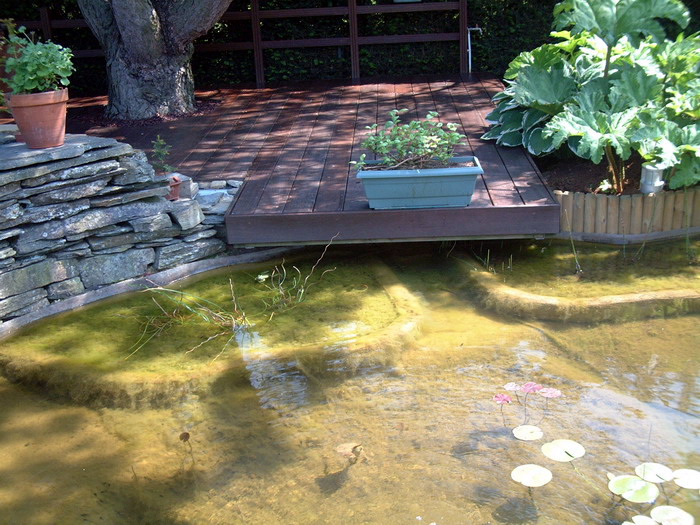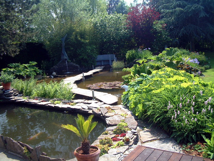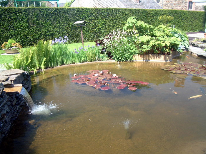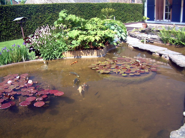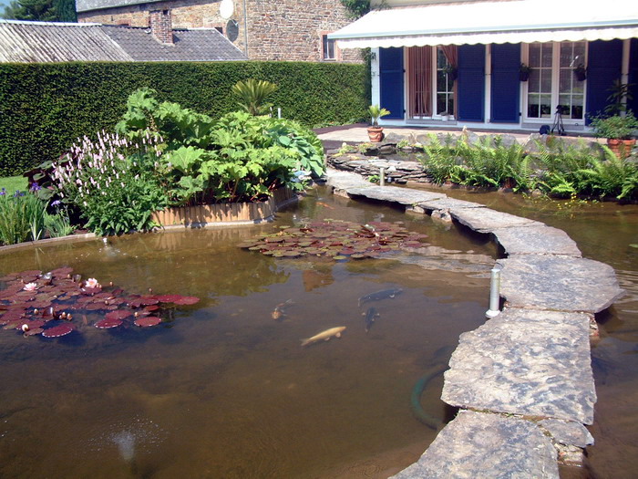 ce superbe jardin aquatique composé d'un bassin à koï et d'un bassin mixte