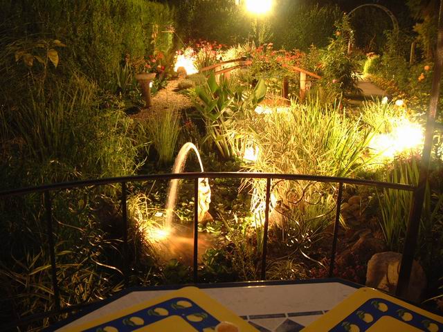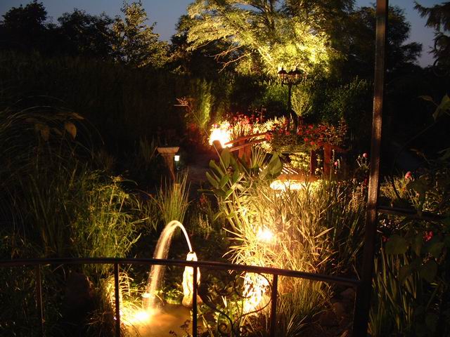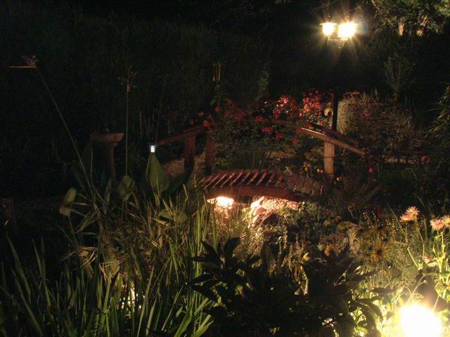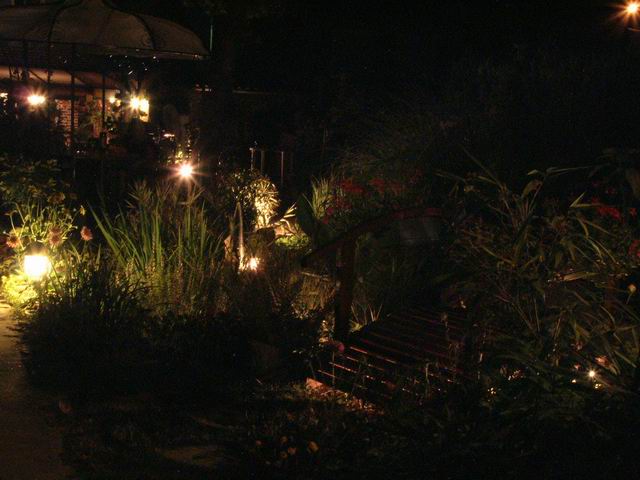 beauté d'un jardin comme celui-ci la nuit avec quelques éclairages C'est