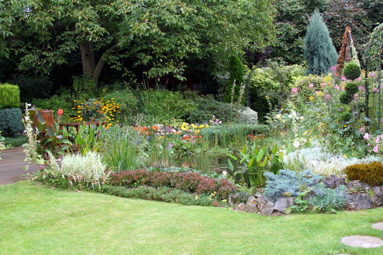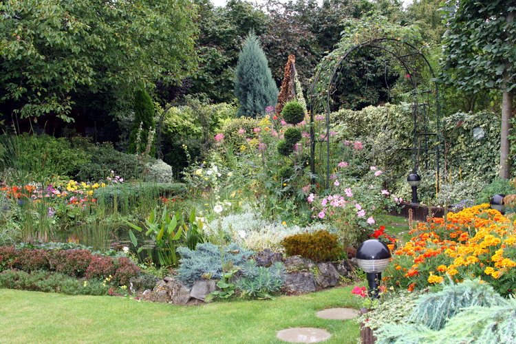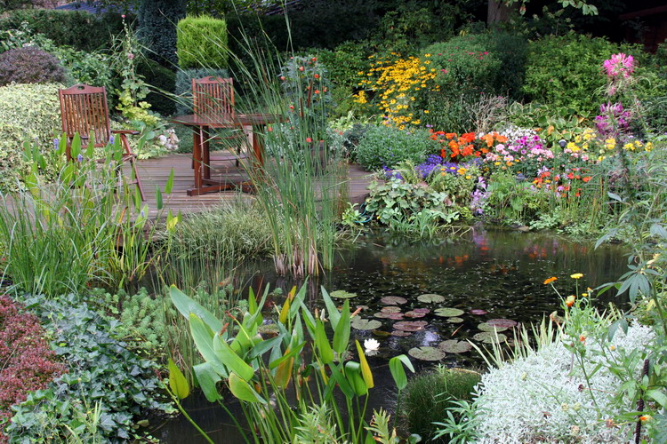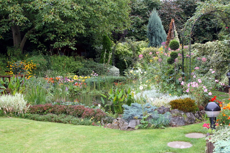 Ce qui caractérise ce bassin de jardin est une harmonie complète et une