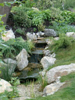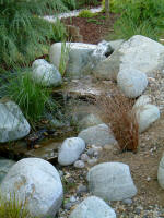 d'une piscine biologique, d'un bassin contemporain, d'une rivière, de ruisseaux, d'une fontaine et d'un module aquatique (pierre jaillissante).