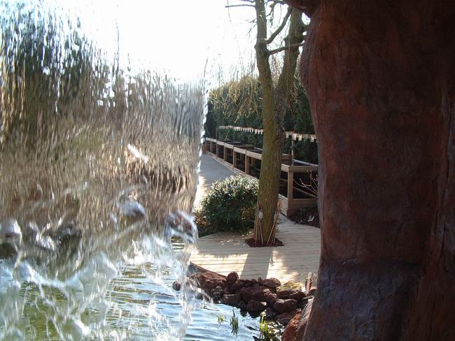 La superbe terrasse de plus de 80 m² accueillera cette saison encore, de nombreuses réalisations d’exposition (cascades, fontaines, statues, etc …) |