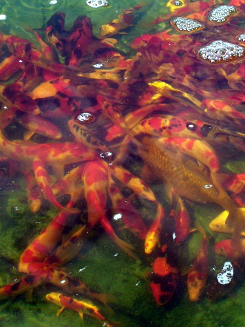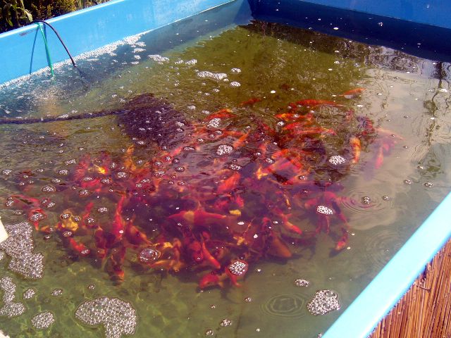 ils ont cependant décidé d'ouvrir leur jardin au public et y commercialisent des koi japonais,