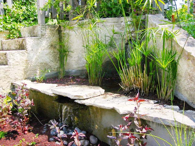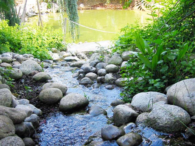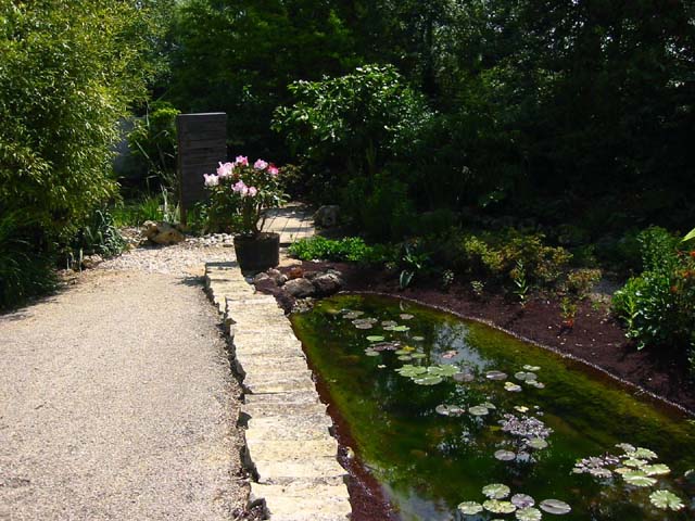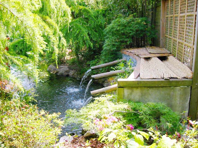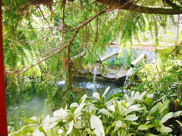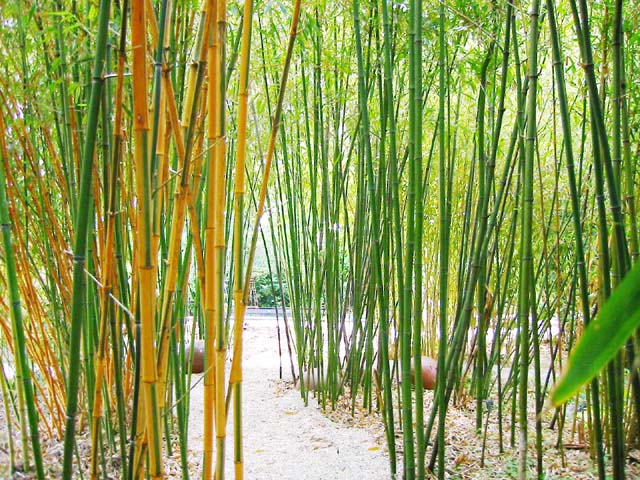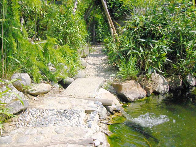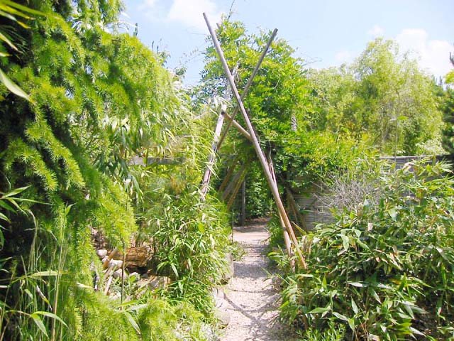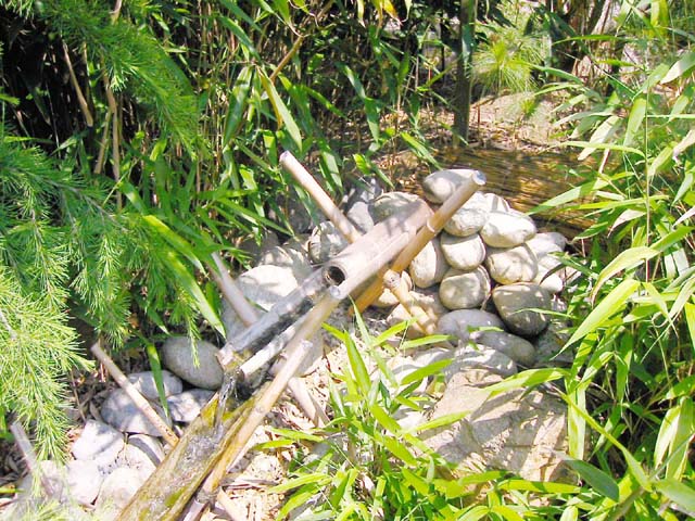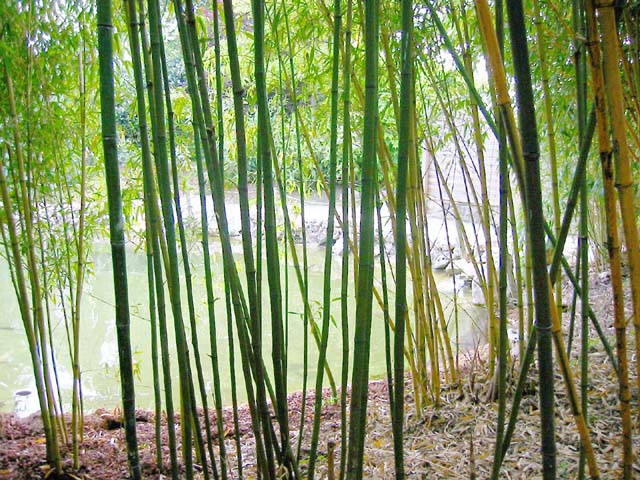 bassin, à un autre endroit, en traversant une forêt de bambou,