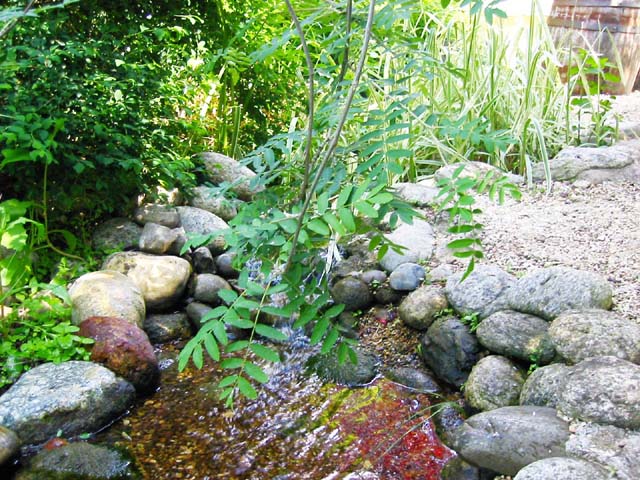 suit toujours de près : à un endroit, une petite rivière se jette dans un