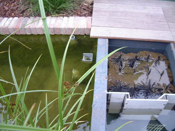 filter-mat. Les poissons sont des koïs de petite taille qui ne demandent