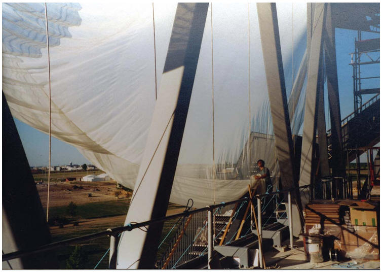 Water Wall is a “vertical fountain”. A thin film of water goes down on a
