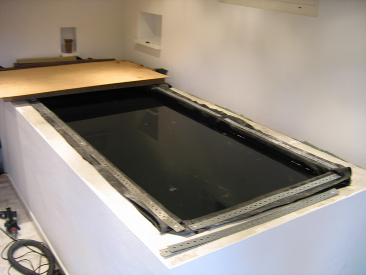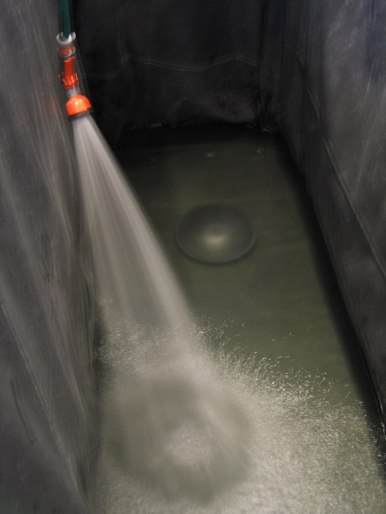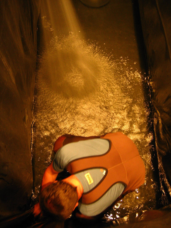 Pendant la monté de l’eau, il faut s’assurer que la bâche n’est pas tendue dans les coins :