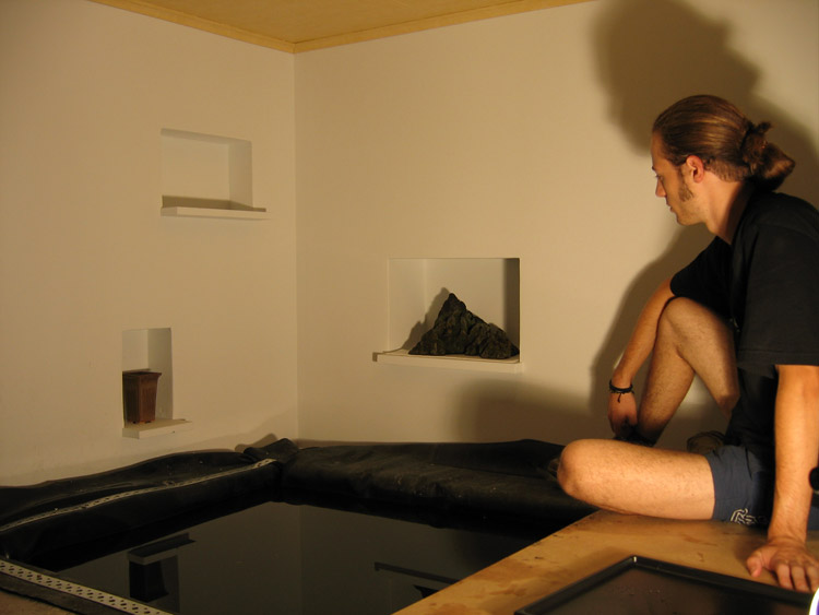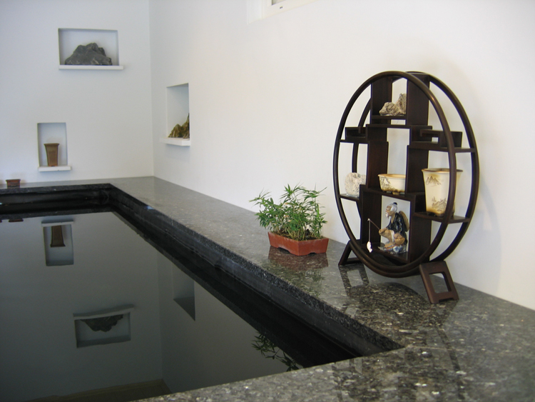 Les plaques de granit de 3cm d’épaisseur sont mises à niveau par des vis (fixées sur le haut du béton) et stabilisées par du mortier (2cm d’épaisseur).