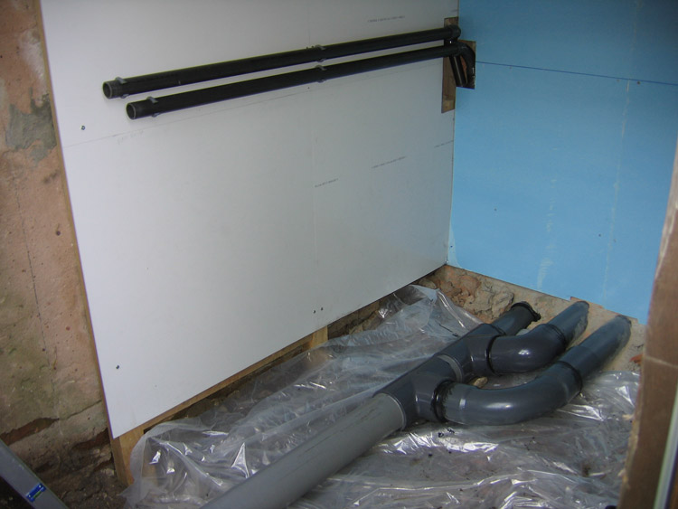 Les tuyaux d’arrivée sont couverts par une plaque de 20cm de béton pour y poser le filtre.