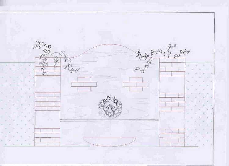 L’idée d’une fontaine m’est venue en réfléchissant au moyen de masquer mes trois bidons pour mon filtre. La largeur a donc était faite en fonction de la future filtration; j’ai donc dessiné un plan de fontaine adossée à un mur.