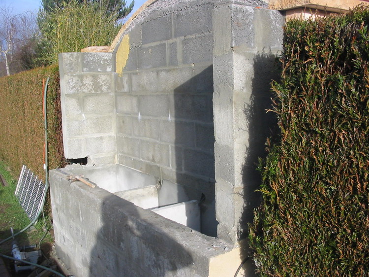 J’ai complété la maçonnerie en agglos de 15 et ceinturé le bac par un couronnement BA sur 3 cotés.