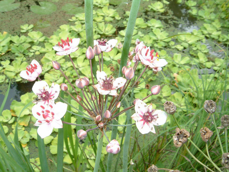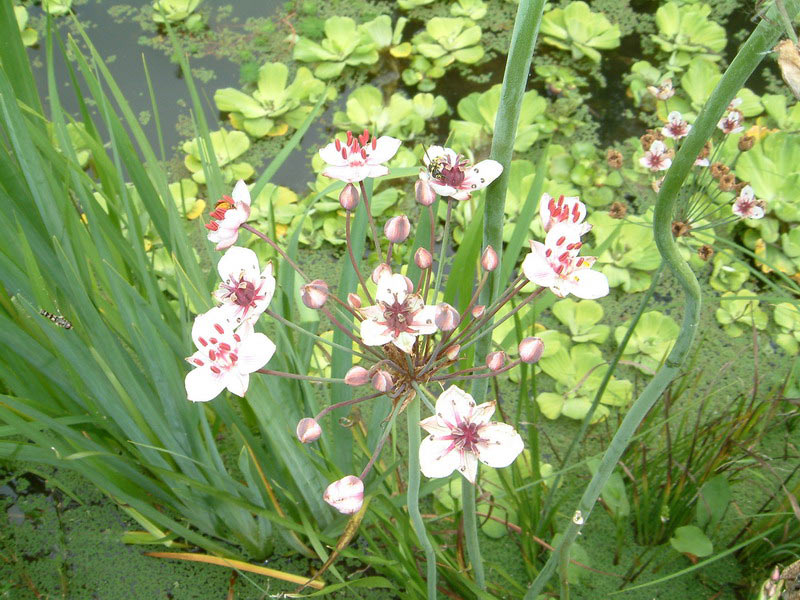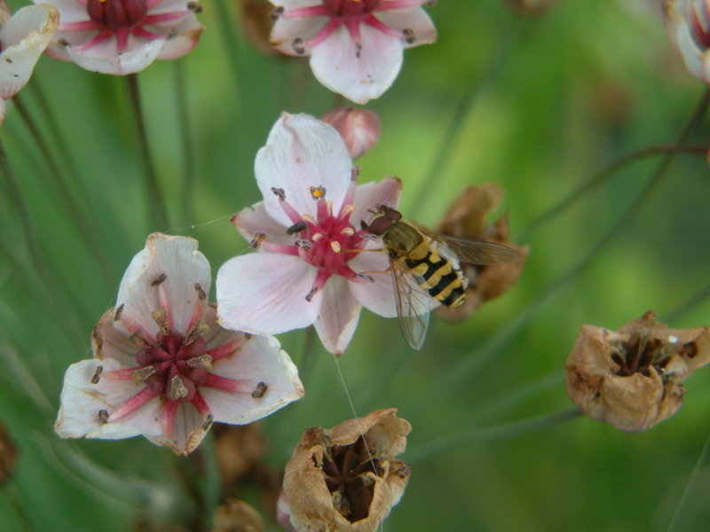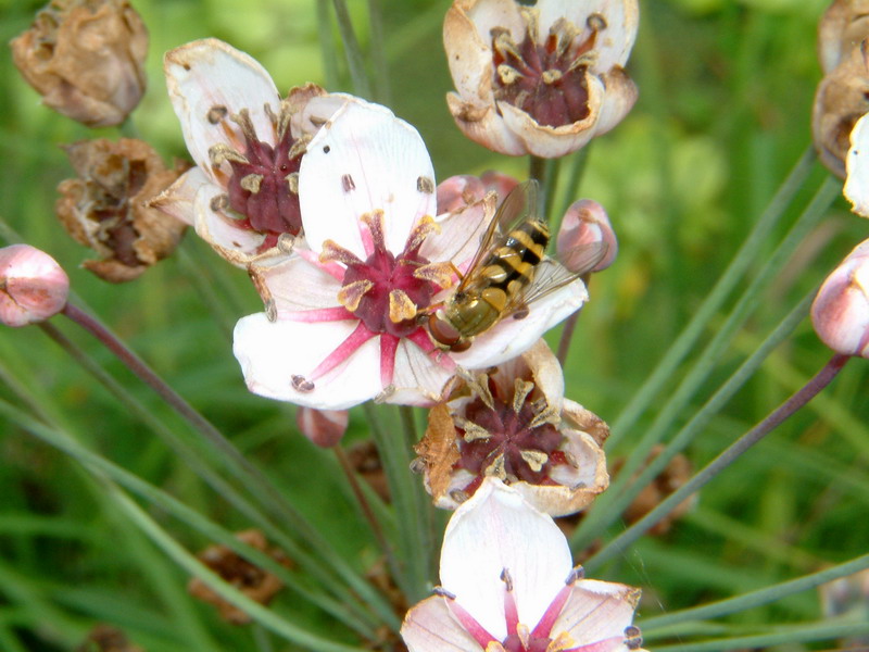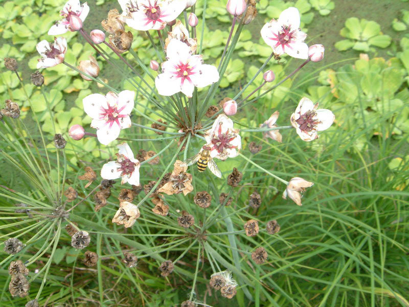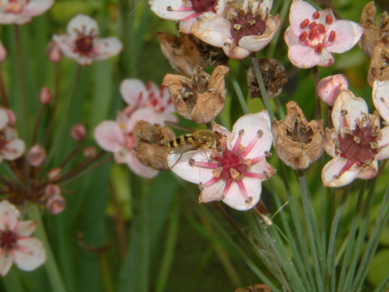 et insecte sur fleurs de Butomus umbellatus (jonc fleuri) |