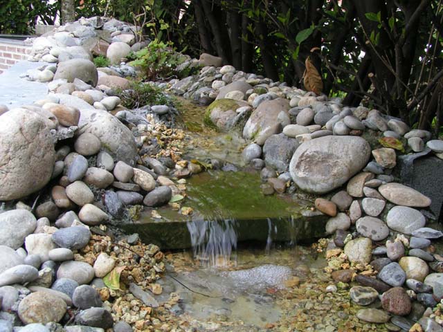 Et le petit ruisseau s'écouler vers la plage de galets. |