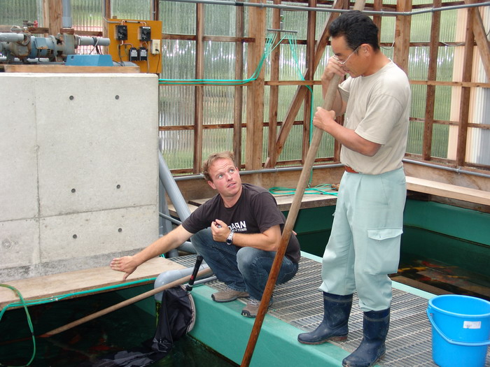 Comme chaque année nous nous rendons au Japon pour y assister à la récolte d’automne des kois. Notre route nous conduira (Kim et Jan, ma main droite) au Niigata pour sélectionner la fine fleur des kois que nous emporterons vers Kim’s Koi!