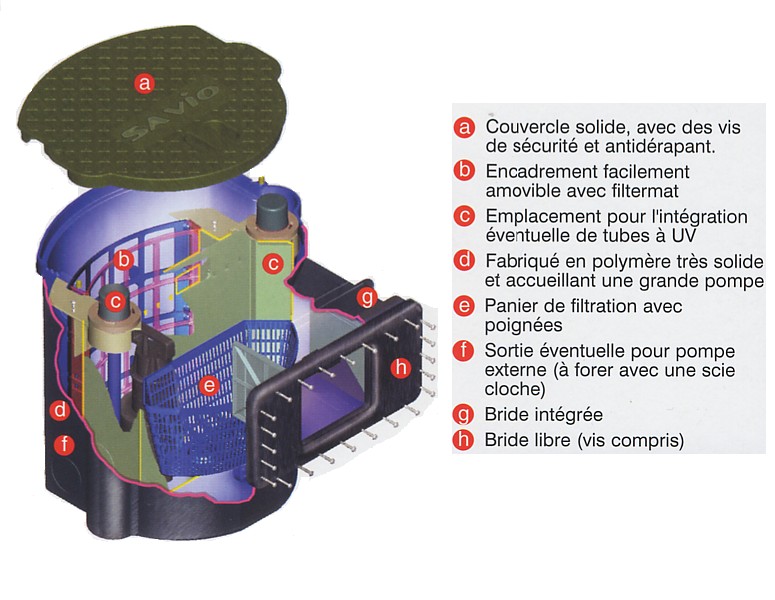 SAVIO peut servir de filtration complète pour un bassin de 5000 à 6000